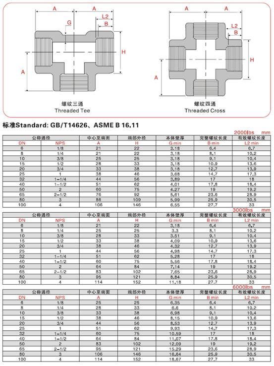 高壓鍛制三通四通特點(diǎn)高壓鍛制三通四通主要是由圓鋼或鋼錠模壓鍛造毛坯成型,然后經(jīng)車床機(jī)加工成型的一種高壓管道連接配件。系列包括三種連接形式:承插焊連接(SW)、對焊連接(BW)、螺紋連接(TR)鍛制承插管件承受壓力等級,一般承插焊接、對焊連接形式管件壓力等級分為 3000LB (SCH80)、6000LB (SCH160)、9000 (XXS)。螺紋連接形式管件壓力等級分為 2000LB 、3000LB、6000LB。